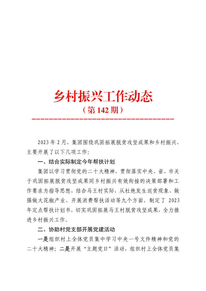 乡村振兴工作动态 (第142期)